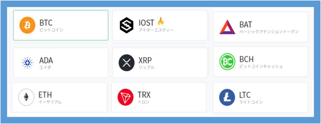 主要通貨にもしっかり対応しており、全部で9つのコインに対応しています。