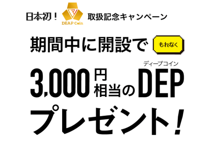 日本初のディープコイン取扱を記念してのキャンぺーンが豪華です。