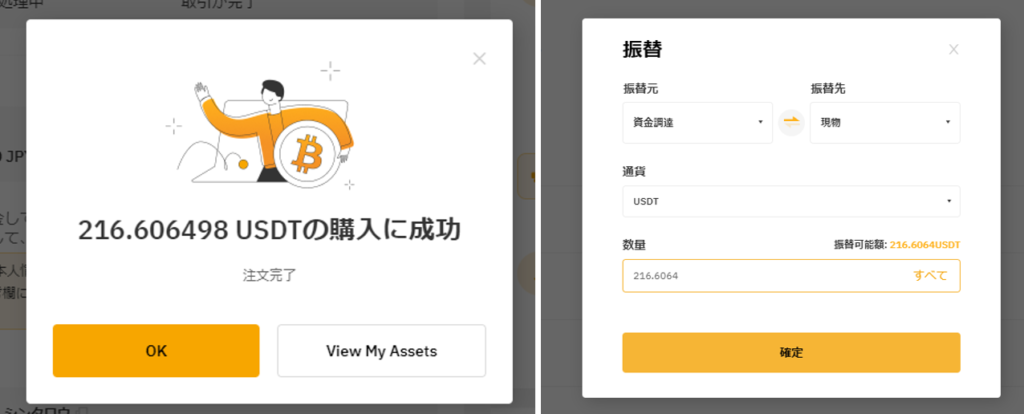 購入ボタンをクリックすると取引が開始されます。