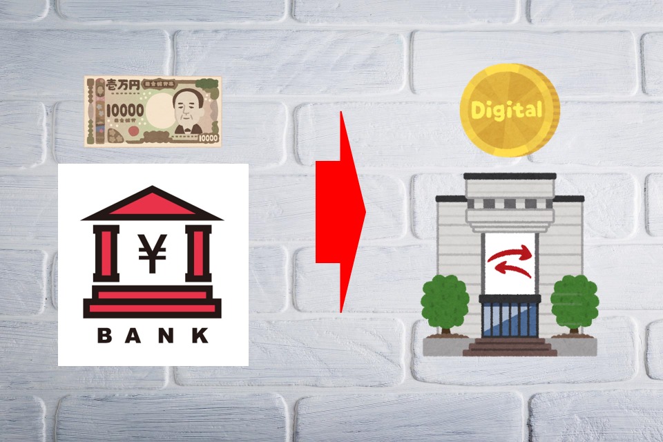①取引画面で日本円を支払う(送金)→②取引所口座にUSDが支払われる(入金)