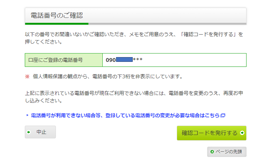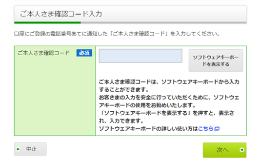 暗証番号・電話番号で確認※口座登録の電話番号が必要