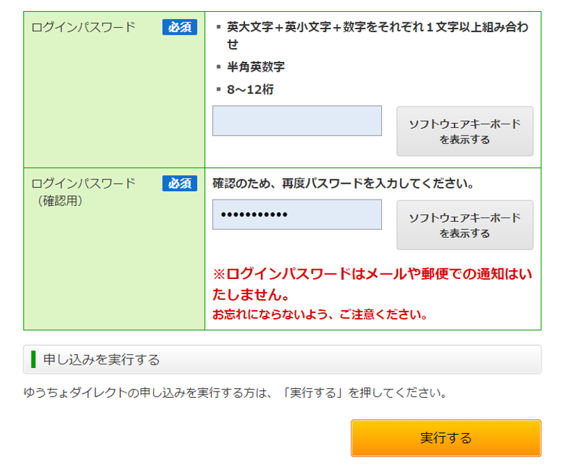 ここではゆうちょダイレクトにログインする際のパスワードを設定します