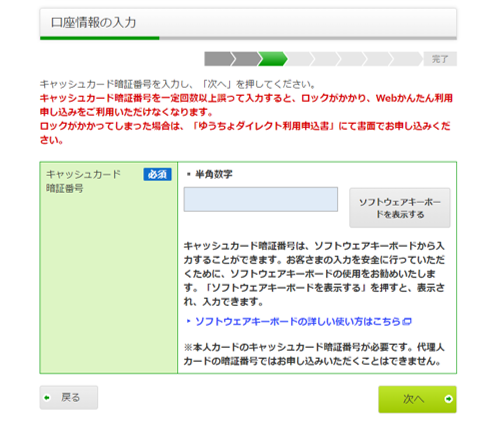 キャッシュカードの暗証番号を入力して口座情報を登録します